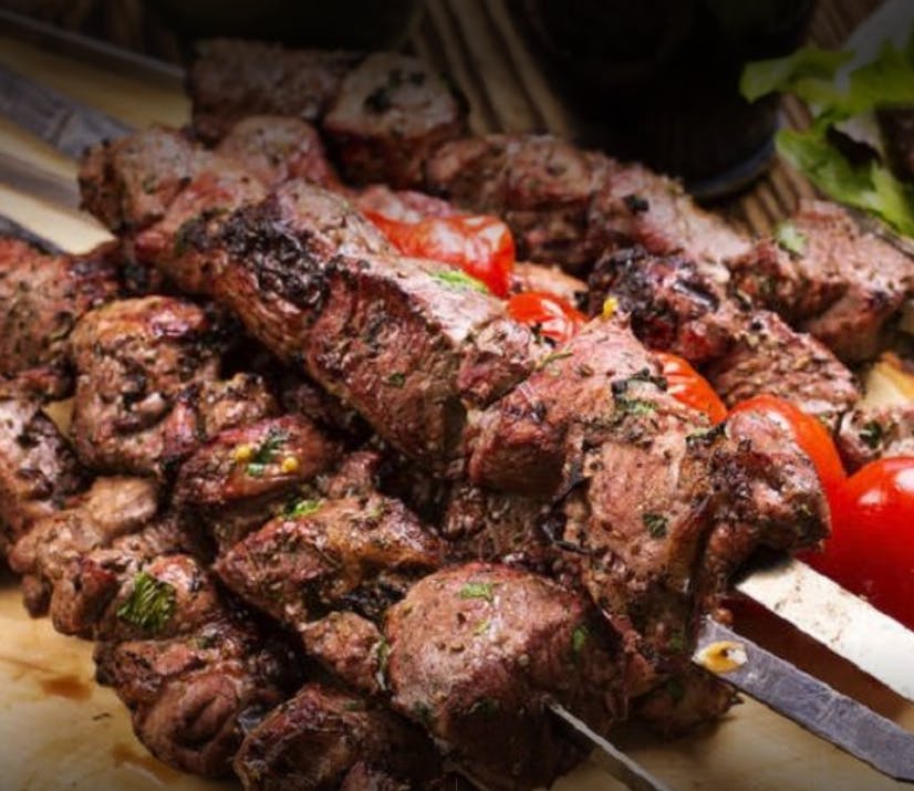 Made with fresh homemade white sauce Lamb beef meat with Lettuce Tomato and onion.